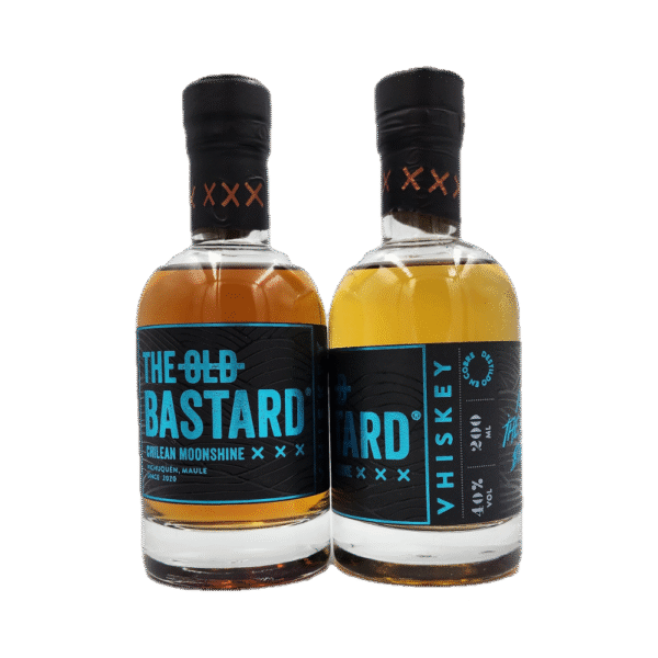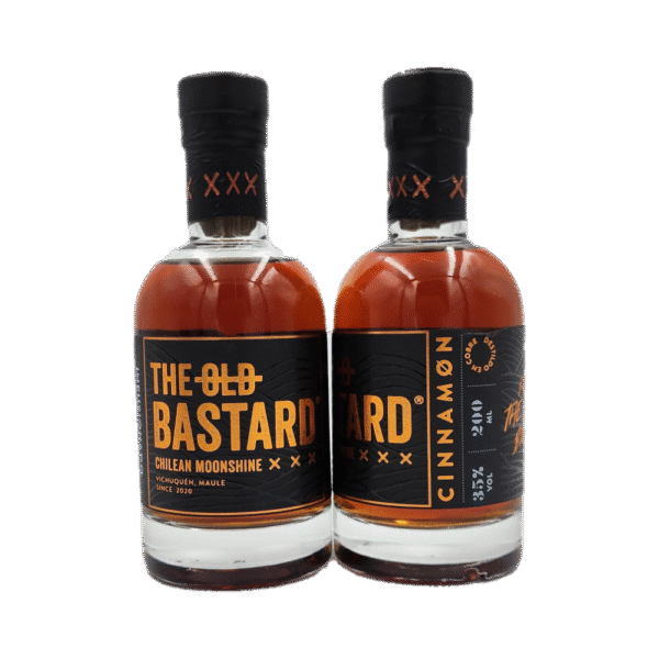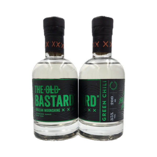 The Old Bastard Chilean Moonshine – Destilado artesanal de alta graduación con carácter rebelde y 100% chileno. Disponible en tres intensidades: Vhiskey (clásico puro), Green Chili (explosión picante) y Cinnamon (calidez especiada). Sabor auténtico sin filtros para paladares aventureros.